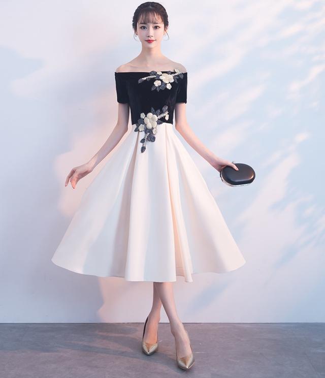 ウエスト切り替えできれいなボディラインと派手過ぎない花模様で落ち着いた印象に。