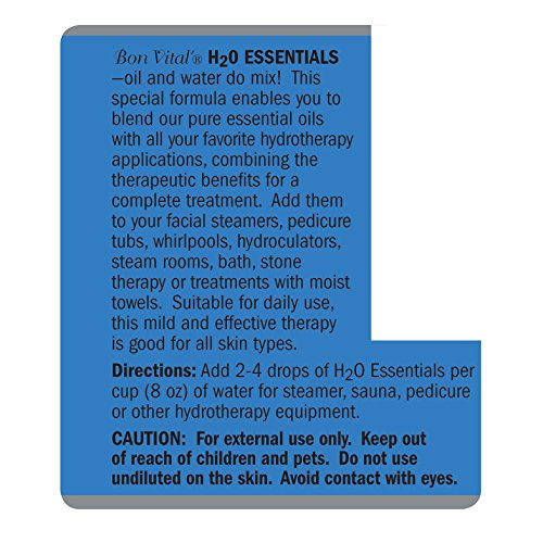 - Bon Vital’s H2O Essential Oils are perfect for a relaxing bath and can be used with your facial steamer, pedicure tub, whirlpool, or steam room for an incredible aromatherapy experience