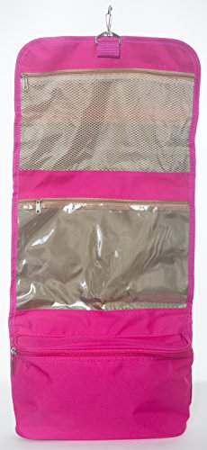 The durable hook is convenient for hanging the toiletry bag wherever in the hotel or in the tent for space saving.