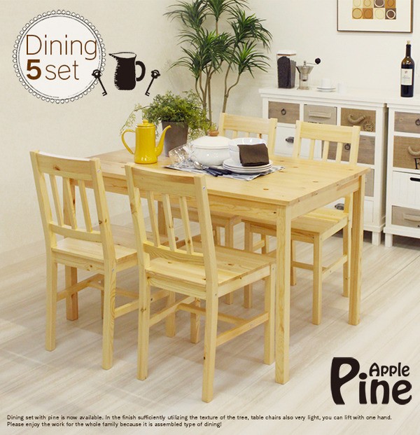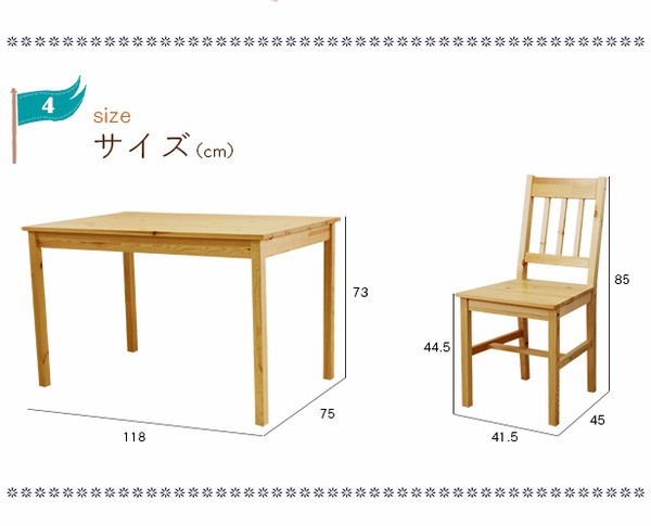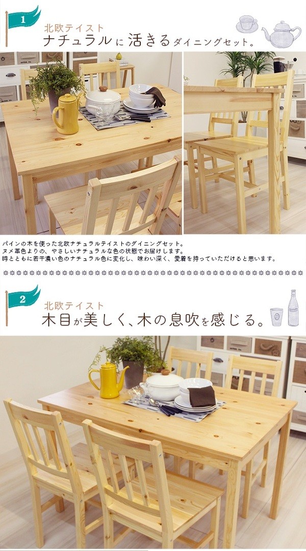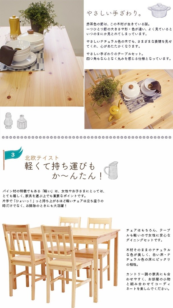 【商品名】ダイニング5点セット(幅75cmダイニングテーブル・ダイニングチェアセット) 木製/パイン材 北欧風 『パイン』 ナチュラル