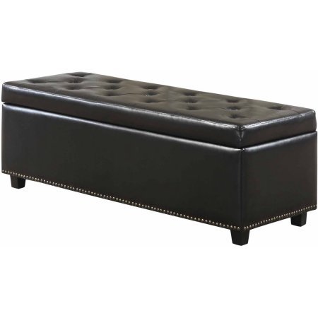 -. Feature : Clutter and junk everywhere. What you need is a well made storage solution that is both functional and beautiful. The Large Rectangular Storage Ottoman Bench is made from durable Black Bonded Leather and is extra strong and sturdy. / . It features a beautiful tufted exterior, nail head trim, lift up lid and large storage interior. Whether you use this ottoman in your entryway, living room, family room, basement or bedroom, it will allow you to hide away all that mess. / Durable tufted diamond design. Internal storage with easy lift top lid. Rectangular storage ottoman bench is made of wood construction with bonded Leather. / Nail head trim. Partially assembled. Child safety hinge. All efforts have been made to reproduce accurate colors; however, variations in color may occur due to different monitor types and photography. Concealed storage area removes the appearance of clutter. Dimensions: 16.1'' H x 48'' W x 17.7'' D. / Our customers receive a FREE BONUS e-book with tips for home optimization and efficiency.