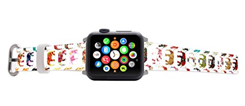 -. Title : Iwatch Bands 38mm,Apple Watch Band Genuine P.R.Ime Elegant Leather Replacement For All iWatch With Silver Metal Adapter - Vintage Green Leaves and Red Strawberry
