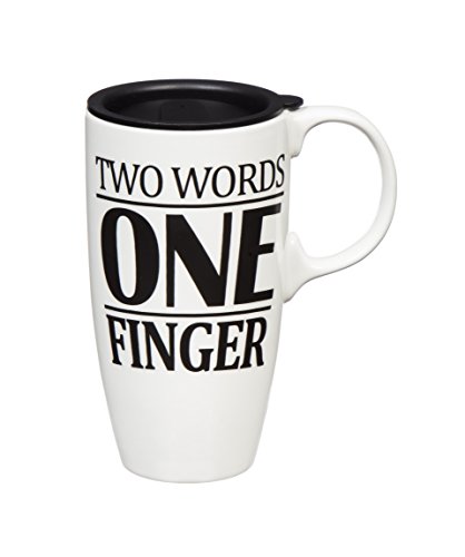Keep Mondays in check or your personality on display with this sassy mug. With it's stark black and white typographic design, this to-go mug is the perfect addition to your morning coffee routine. Fitted with an airtight, spill-proof lid, this latte travel mug will make sure that wherever you go, your drink goes with you. Made of heat-resistant ceramic, this oversized mug holds up to 17 ounces and is both dishwasher (top rack) and microwave safe. Packaged in a sturdy box to ship easily, this travel mug makes a great gift as well.Feature