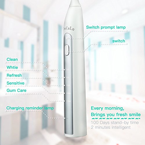 DECULO Sonic Electric Toothbrush With IPX7 Waterproof ,Rechargeable ,35000 Brush Strokes And 5 Brushing Modes (Silvery/white)