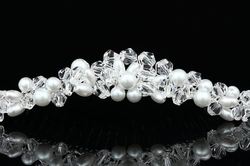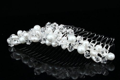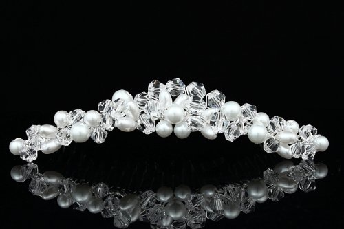 Handmade Faux Pearl Crystal Bead Cluster Bridal Wedding Tiara Comb - Silver Plated FC039