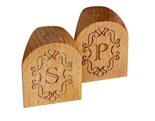 Talisman Designs Beechwood Salt & Pepper Shakers, Classic Collection Laser Etching