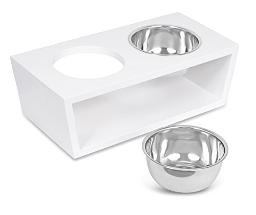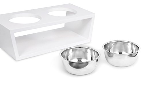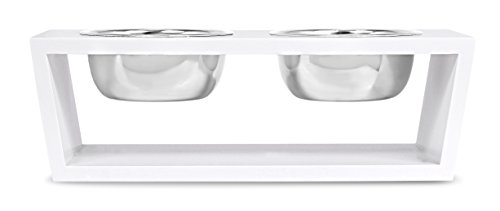 Studio : Internet's Best Publisher : Internet's Best Binding : Misc. Product Description Internet's Best Modern Elevated Pet Feeder is a perfect dog, puppy or cat feeder providing a healthier eating experience. The pet bowls rest nicely within a decorative raised pet feeder allowing your cat or dog to eat at a better posture improving your pet's digestive health. Each elevated feeder is crafted from a durable wood stained with a sleek and simple white finish. The feeders are designed in a simplistic modern style providing a soft touch to any room. The elevated dog bowl is equipped with 2 separate stainless steel dog bowls measuring at 16oz each. Bowls may be removed simply and are dishwasher safe for ease of cleaning. The pet feeders are shipped fully assembled for immediate use upon arrival. Treat your pet like royalty with Internet's Best Modern Elevated Pet Feeder 0