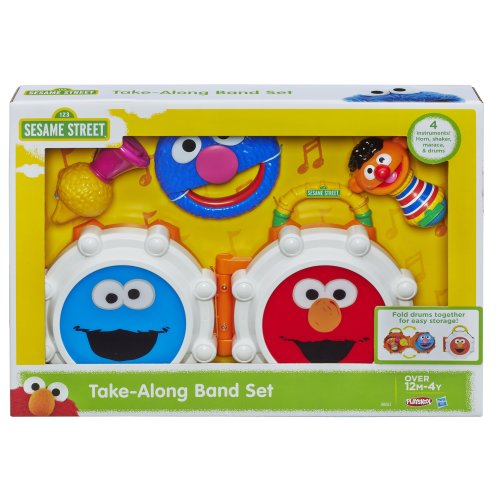 -. Binding : Toy -. Brand : Sesame Street -. EAN : 0885445064134 -. Feature : High quality toys for children all ages / Made using safe materials / Tested for quality and durability / Preschoolers love making music with their favorite Sesame Street characters / All instruments nest inside the bongo drums for easy travel and storage / Join with little ones to make music together / Little ones are introduced to tempo and rhythm with easy-to-use instruments / Includes Grover shaker, Ernie maraca, Big Bird horn, and Elmo and Cookie Monster bongo drums -. IsAdultProduct : 0 -. ItemPartNumber : HS-3955 -. Label : Hasbro -. Manufacturer : Hasbro -. Model : A8261 -. MPN : HS-3955 -. PackageQuantity : 1 -. PartNumber : HS-3955 -. ProductGroup : Toy -. ProductTypeName : TOYS_AND_GAMES -. Publisher : Hasbro -. Studio : Hasbro -. Title : Playskool Sesame Street Take-Along Band Set -. UPC : 885686325933 -. Warranty : No Warranty