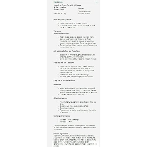 ReleaseDate : 2016-01-28 Studio : Everready First Aid Publisher : Everready First Aid Binding : Health and Beauty Product Description Pack of 3-sugar free. Fights coughs naturally. Soothes sore throats. Effective relief. Ricola sugar free green tea cough drops contain natural menthol to relieve sore throats along with Echinacea, and ricola's delicious mixture of Swiss alpine herbs. Herbs have been used around the world for centuries. For over 75 years, ricola has been making pleasant tasting natural herbal products for natural relief of the discomfort due to sore throat and minor irritation due to coughs, hoarseness, dry throat, and loss of voice. Ricola is nature's way of calming coughs and soothing sore throats. Phenylketonurics, contains phenylalanine 1 mg per drop. Product may be useful for diabetics in the advice of a doctor. Exchange information: 3 drops is equal to free exchange; 9 drops is equal to 1 fruit. Product of Switzerland. 0