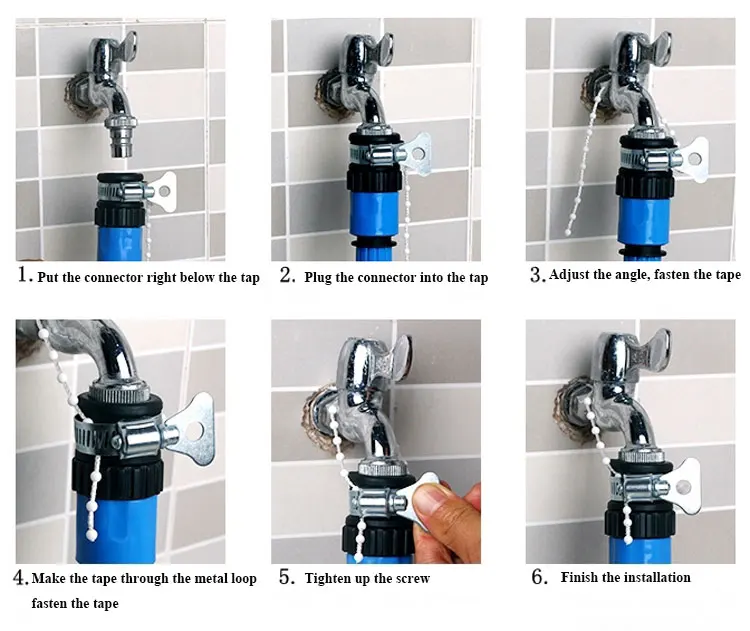 Tap Conncetor is a simple, practical and universal hose pipe quick connector adapter, which is mainly made of durable hard plastic and alloy materials, and specially designed to connect water hose and water faucet. A metal hoop can effectively prevent connector leaking or falling off. Easy to install and use, it is really a universal tap connector for choice.