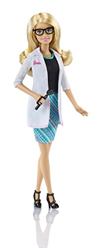 Explore new careers in depth with the Barbie Careers complete play sets. From medicine to teaching, Barbie makes anything possible! The Barbie Careers Eye Doctor set brings everything info focus with a special examination chair and eye chart. Eye Doctor Barbie doll can start her workday with the adorable toddler included with the set. She wears a pretty floral dress with pink sneakers for a trendy look. Place the patient in the special pink chair to start -- it's designed to keep her snug for the eye exam but also has signature style with silvery and blue accents and a swinging arm that holds the vision station. Barbie doll can check her patient’s eyes with the tool that fits on her hand then have her read the stand-up eye chart, that doubles as a display case. If Barbie prescribes glasses, there are four fun pairs for options, from glam heart-shaped frames to modern black frames. Barbie is seeing clearly in glasses of her own that complement her fabulous outfit: a blue printed skirt, black top, black heels and white doctor’s coat. Girls will love exploring the world of optometry with this eye-opening set! Includes Barbie doll wearing career fashion and eyeglasses, toddler patient doll wearing fashion, vision chair/station, eye chart, vision tool and four pairs of toddler glasses. Barbie doll cannot stand alone. Colors and decorations may vary.Feature