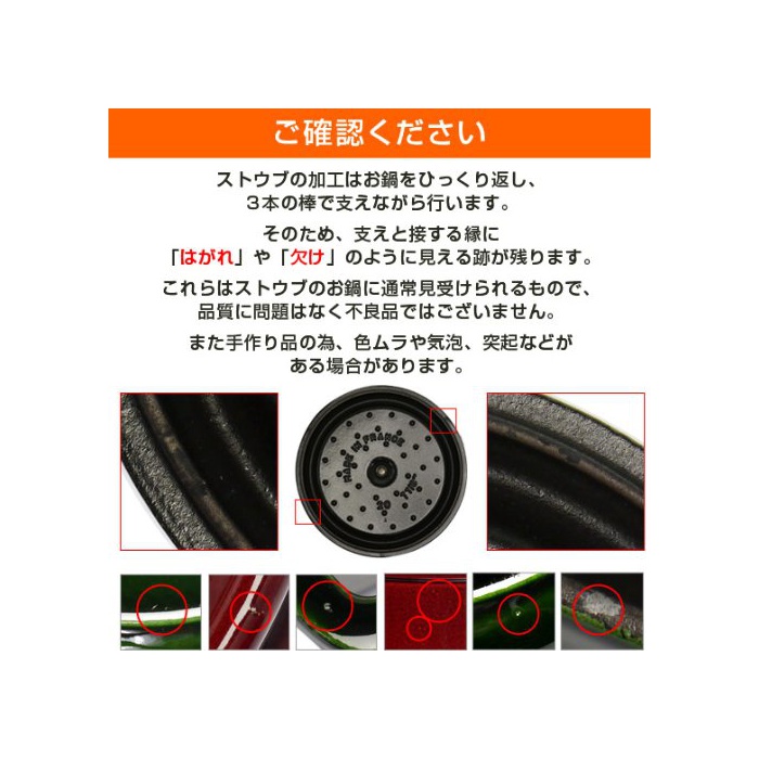 ▼주의1▼ 작음이다「벗겨지다」야「부족해라」와 같이 보이는 자국이 남지만,제조 과정에서 붙는 것으로 품질에는 문제 없이,결함품 이 아닙니다.또한핸드 메이드에 만들어져 있기 때문에(위해),얼룩,약간 기포,작은 돌발 등은,제품 공정상 생기는 것이고, 사용에 문제는 없습니다. ▼주의2▼ 냄비의 뚜껑에는 융기하여 보았자 있습니다. 본체와의 안정을 꾀하고, 압력을 놓치기 위한 가공이 되고, 다소 증기가 새는 경우가 있지만,사용에는 문제 없습니다. ▼주의3▼ 클릭의 상품은,병행수입에 의해해외로부터 수입 하고 있습니다.그