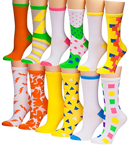 -. Title : Tipi Toe Women's 12 Pairs Colorful Patterned Crew Socks