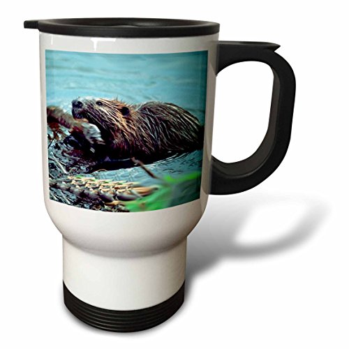 3dRose Beaver Travel Mug, 14-Ounce, Stainless Steel