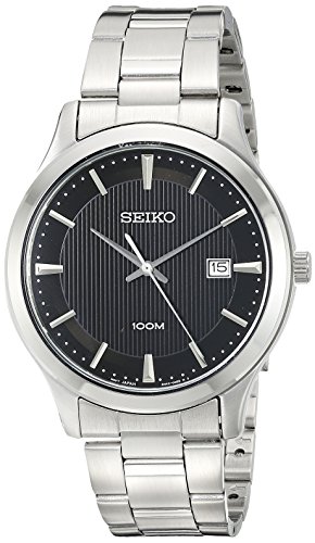 Seiko Three-Hand Date Stainless Steel Men's watch #SUR051 Dress watch, Japanese quartz movement, Polished silver-tone hands, Polished silver-tone sweep seconds, Applied polished silver-tone markers, Silver-tone indices form minute track