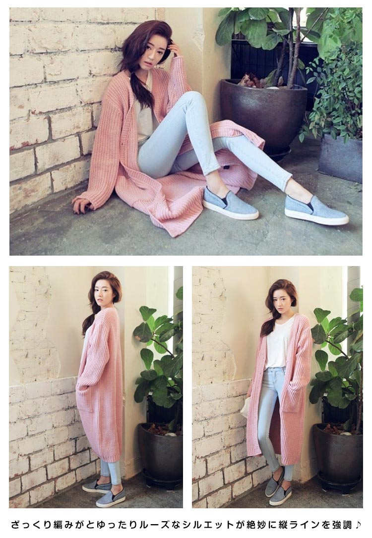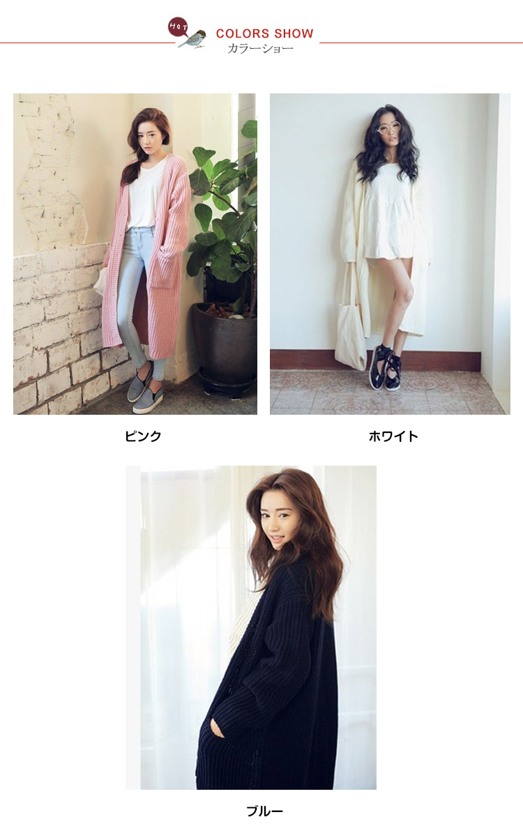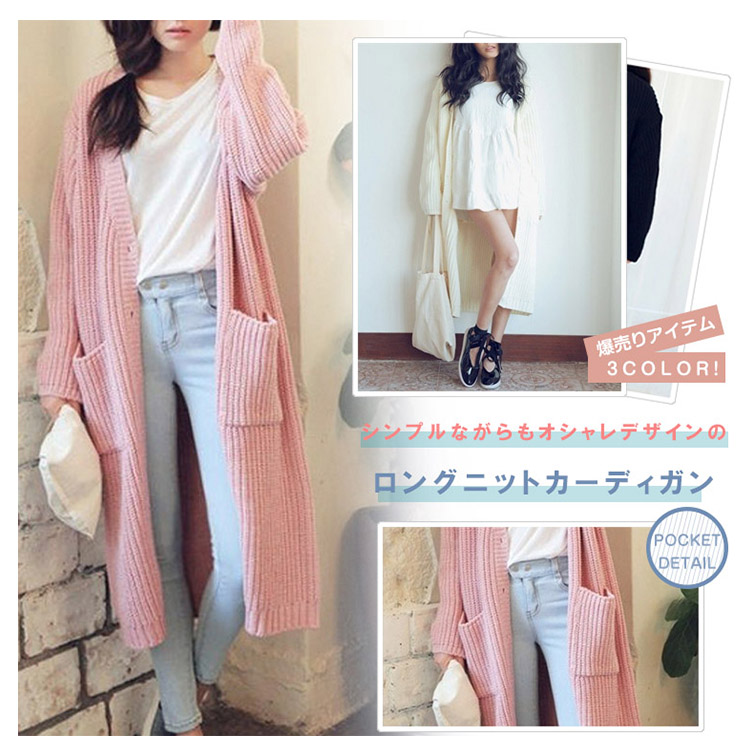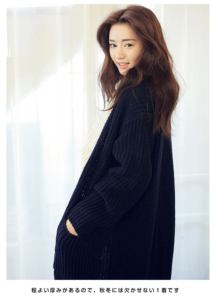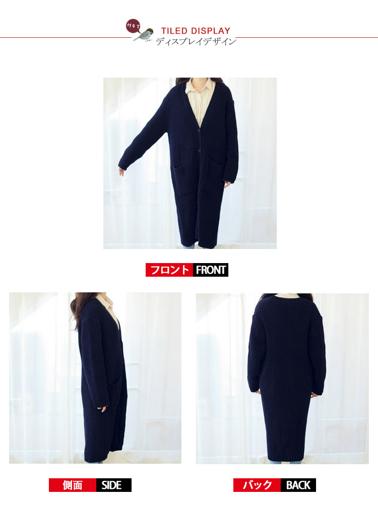 | シンプルながらもオシャレデザインのロングニットカーディガンざっくり編みがとゆったりルーズなシルエットが絶妙に縦ラインを強調♪羽織るだけで、上品さとオシャレ感叶えた優れモノ程よい厚みがあるので、秋冬には欠かせない1着です | |
