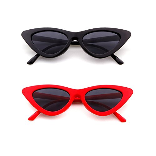 Retro Cat Eye Sunglasses for Women Vintage Mod Narrow Plastic Frame UV protection Red Black 2 Pack