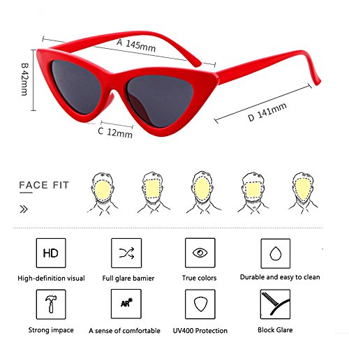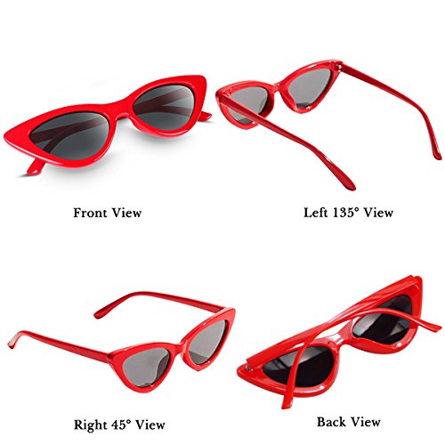 ☀️BUNDLE PACKAGE►Red and black sunglasses can match your most outfits well, no matter in daily wear or party favors. Novelty cat eye shape and 2 different color set can bring you fresh comfort feeling every day. The cat eye shape is stylish in the 60s,70s,80s,90s,00s. You can also keep your favorite color and give the other to your friend for gift, so your whole squad look fire. Perfectly choices for gift.