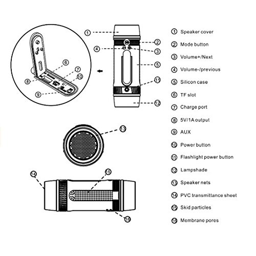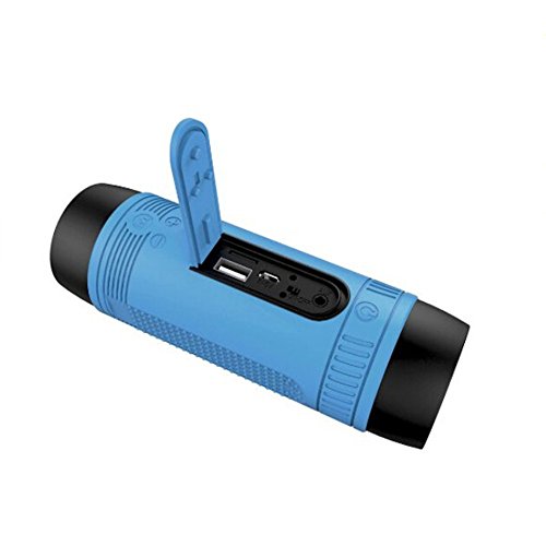 -. Feature : Built-in Bluetooth Technology Works with Virtually any Bluetooth-Enabled Device (Smartphones, Tablets, PCs) / Silicone protective sleeve ensure waterproof, dustproof and shockproof function / Built-in 4000mAH battery, which can last for up to 10 hours on a single charge. This speaker can also be used as a power bank / This is a multifunctional bluetooth speaker which has flashlight, wireless bluetooth music, FM, TF card, power bank functions / S1 is IPX5 waterproof and dustproof skid