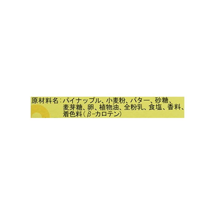 원재료:파인애플,소맥분,버터,설탕,맥아당,알,식물성 기름,전분유,식염,향료,착색료(β-카로텐)