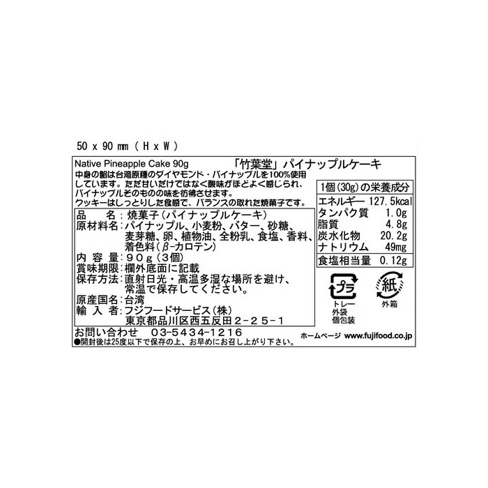 원본상품명: フジフドサビス 竹葉堂 パイナップルケキ(3個入) 90g