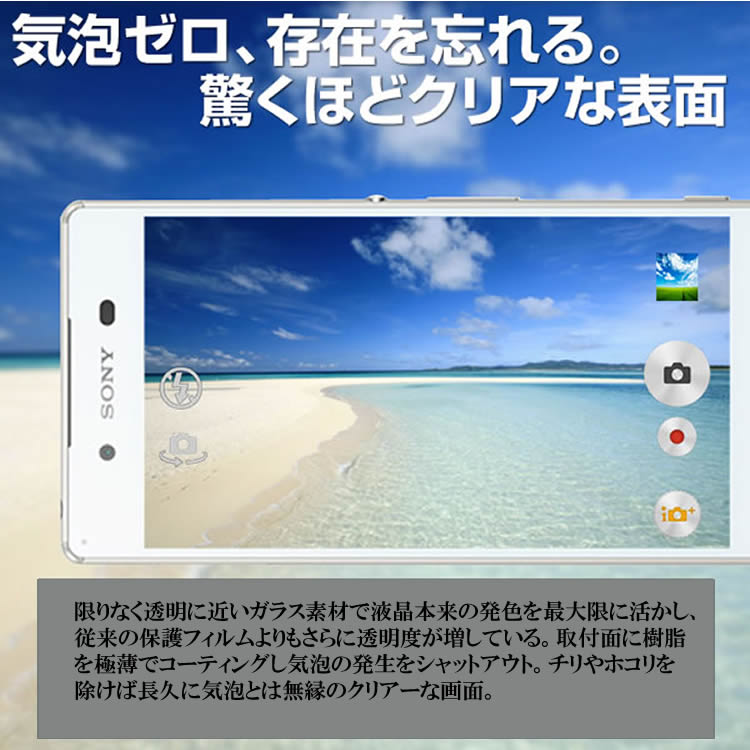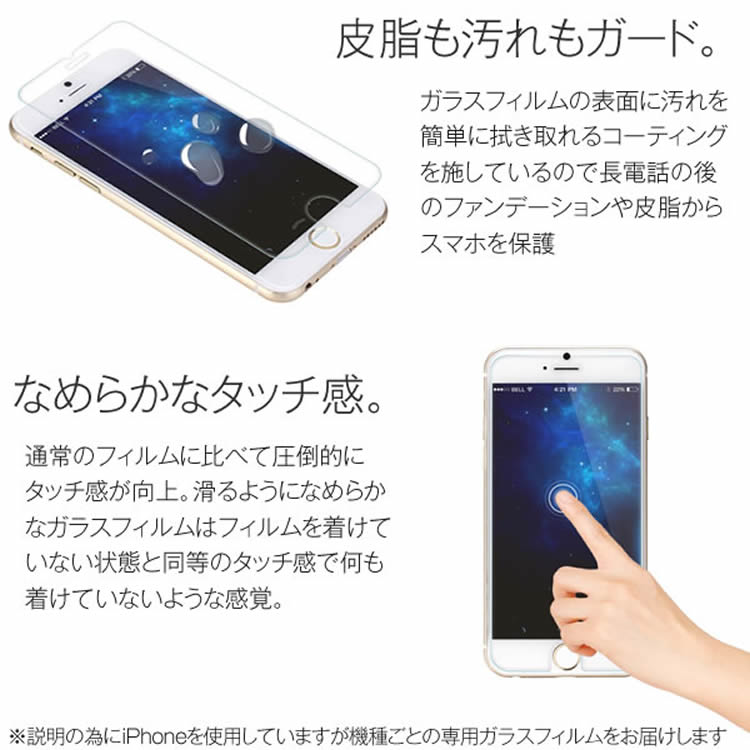 化学強化処理されたガラスは、透過率が高く非常にクリアです。特殊なシリコン粘着剤を使用しているので貼り付けやすく、ソフトなタッチ感を楽しめます。
