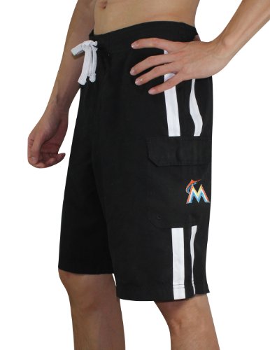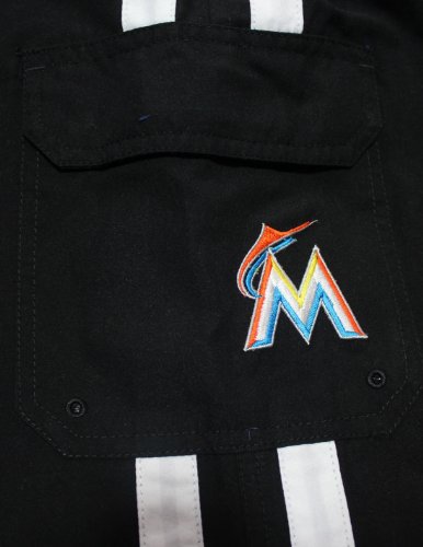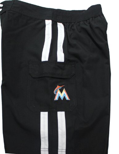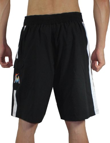 Mens MLB Miami Marlins Athletlic Sports Shorts with Swim Lining L Black