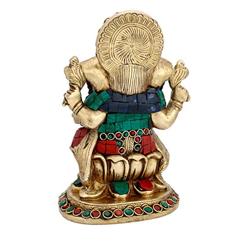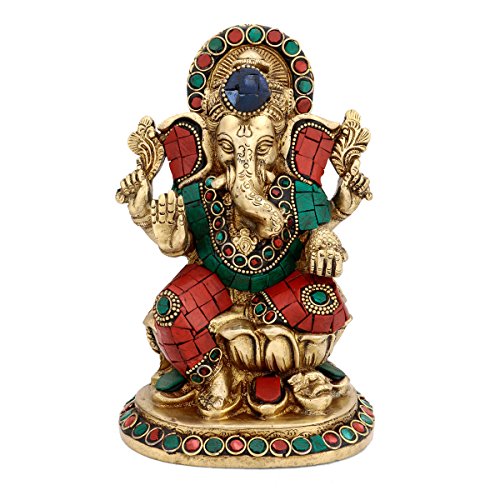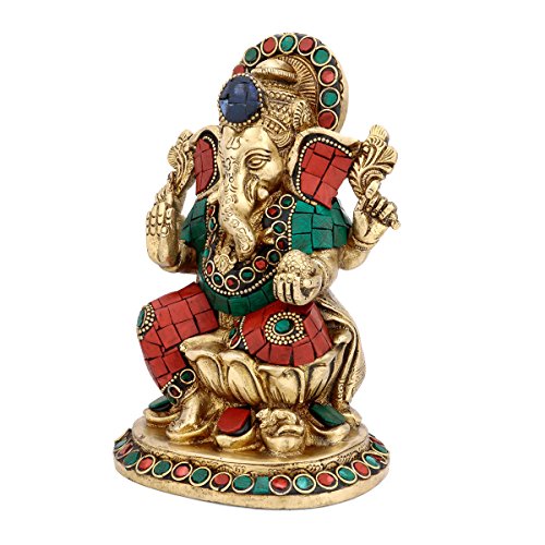 Studio : CraftVatika Publisher : CraftVatika Binding : Kitchen Product Description Ganesha Statue is the Lord of success and destroyer of evils and obstacles. Ganesha Statue is known to Bring prosperity and happiness in your home Office. He is also worshipped as the god of education, knowledge, wisdom and wealth.Size : 7 Inches Height X 5 Inches wide X 4 Inches depth. Weight : 2.1 kg. Material : Brass , With Turquoise and other coral stone Handwork. Deepen your worship or add distinction to your decor with a genuine handmade Indian statue unlike anything you've seen before. Order the Handmade Indian Brass Idol today. 0