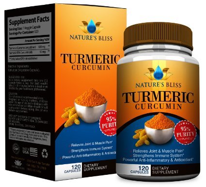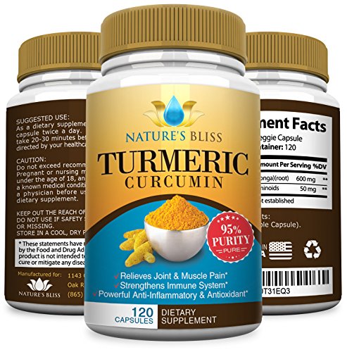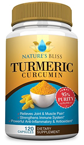 -. Binding : Health and Beauty -. Brand : Nature's Bliss -. EAN : 0617689939844 -. Feature : ★ MOST POTENT PUREST QUALITY AVAILABLE ✔ Nature's Bliss Turmeric Curcumin is the best seller in the ability to support joint and muscle pain reduction while reducing inflammation throughout the body. / ★ 100% PURE AND NATURAL ANTIOXIDANT PILLS ✔✔ Our 650mg joint relief supplement pills are simple and easy to take. Take 1 capsule twice a day for a total of 300mg (HIGHEST ON THE MARKET). 95% Pure Active Curcuminoids work throughout the day towards a healthier life. / ★ TOP RATED EXTRA STRENGTH TURMERIC CURCUMIN EXTRACT IS ALSO GOOD FOR: Workout Recovery ♥ Acne Control ♥ Pain Management ♥ Recovery from Surgeries ♥ Muscle Soreness ♥ Severe Sinus Pressure ♥ Migraines ♥ General inflammation in the body ♥ Back, Knee, and Elbow Pain ♥ Athletic injuries ♥ Dog and Cat injuries and age related inflammation. / ★ PROVEN AND TESTED FORMULA ✔✔✔ Our potent formula is made in a USA FDA approved laboratory and guaranteed to be the highest quality supplement available on Amazon. / ★ WE LOVE OUR CUSTOMERS ✔✔✔✔ We are proud to boast an extremely high repurchase rate from our customers because our Turmeric Curcumin Complex works! Read our reviews, do your research, then purchase our product. If for any reason you are dissatisfied, contact us for a no questions asked 100% Money Back Refund. -. IsAdultProduct : 0 -. Label : Nature's Bliss -. Manufacturer : Nature's Bliss -. PackageQuantity : 1 -. ProductGroup : Health and Beauty -. ProductTypeName : HEALTH_PERSONAL_CARE -. Publisher : Nature's Bliss -. Size : 120ct -. Studio : Nature's Bliss -. Title : EXTREME Anti-Inflammatory 1300mg Curcumin (Turmeric) ★ 120 Veggie Capsules ★ Dietary Supplement Supports Strong Muscle and Joints for All Natural Pain Relief ★ Supports a Healthy Immune System ★ All Natural Organic Quality Antioxidant Supplement for the Best Absorption Available" -. UPC : 617689939844