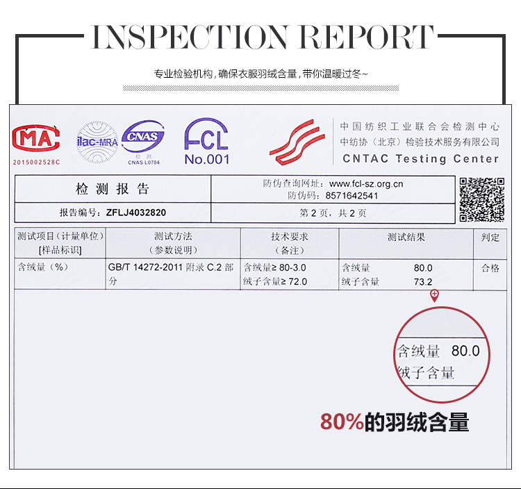 | | 面 料 信 息: | | 主 料:锦纶 | 配 料:撞布1:聚酯纤维撞布2:聚酯纤维 | | 里 料:聚酯纤维填充物:80#白鸭绒80%羽绒20%羽毛鸭绒克重S:148gM:154gL:165gXL:171g | 颜 色:灰色、荧光黄 | | | | | 版型指数: 休闲修身宽松宽大造型 | | 长度指数: 长款短款常规加长款 | | 弹性指数: 无弹微弹中弹高弹 | | | | | | | | | | | | | | | | | | 尺码 | 肩宽 | 胸围 | 腰围 | 下摆 | 前衣长 | 袖长 | 袖肥 | 袖口 | | S | 39 | 110 | | 107 | 78.5 | 61.5 | 33 | 27 | | M | 40 | 114 | | 111 | 80.5 | 62.5 | 34.4 | 28 | | L | 41 | 118 | | 115 | 82.5 | 63.5 | 35.8 | 29 | | XL | 42 | 122 | | 119 | 84.5 | 64.5 | 37.2 | 30 | | | | | 试穿体验 : | | 试穿者 | 身高 | 体重 | 三围 | 试穿尺码 | 试穿体验 | | Anne | 160 | 43.5 | 72/56/86 | S | 合身 | | Ivan | 158 | 51 | 78/62/87 | M | 合身 | | Renee | 167 | 60 | 85/68/91 | L | 合身 | | Helen | 164 | 53 | 82/66/92 | M | 合身 | | Lisa | 163 | 65 | 92/80/94 | XL | 合身 | | | | 货号:5ML4011S | | | | | 货号:5ML3914N | | | | | 货号:5CF3003X | | | |