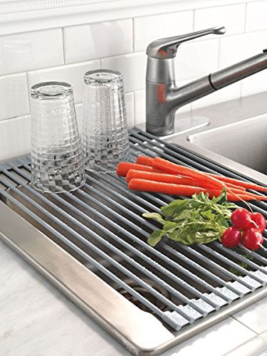 HUJI Over The Sink Stainless Steel and Roll Up Drying Rack Drainer(1, Roll Up Drying Rack)