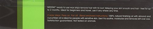 Studio : Moom Publisher : Moom Binding : Health and Beauty Product Description Moom Express Pre Wax Strips For Legs And Body Description: Natural Wax Strips For All Hair Types 20 Strips (10 Double-sided) With Soothing Chamomile And Lavender Botanicals MOOM ready to use wax strips remove hair with its root keeping your skin smooth and hair free for up to 2 months. Ideal for beginners and travel use it anywhere any time. Disclaimer These statements have not been evaluated by the FDA. These products are not intended to diagnose treat cure or prevent any disease.Size : 20 STRIPPack of : 1Product Selling Unit : each 0