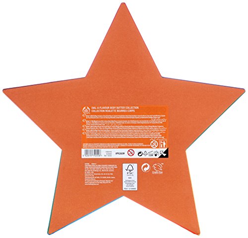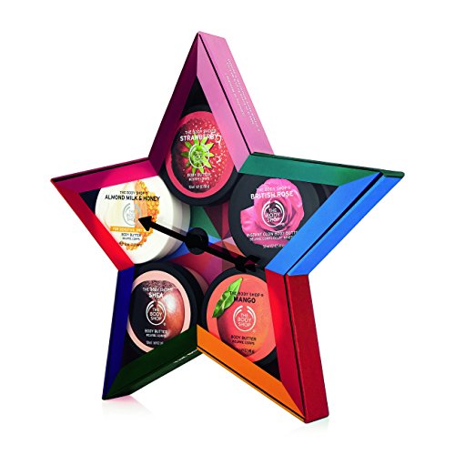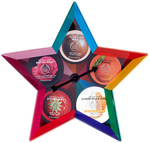 ReleaseDate : 2017-09-03 Studio : Buth-na-Bodhaige Inc, d/b/a The Body Shop Publisher : Buth-na-Bodhaige Inc, d/b/a The Body Shop Binding : Health and Beauty Product Description Discover various fabulous flavors of The Body Shop's iconic body butter with The Body Shop Body Butters Spinner gift set. This body care gift set of five travel size body butters comes in scents across the sweet to subtle spectrum: 1. Shea - classic and clean 2. Almond Milk Honey - warm and comforting, 3. British Rose - fresh and feminine, 4. Mango - juicy and fruity, 5. Strawberry - delicious and sweet. Whether you can't choose the perfect gift for someone, or if it's time to treat yourself, this gift set transforms into a game, with a spinner to point you in the right direction. Everyone wins (and has softer, smoother skin)! 0