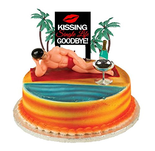 CakeSupplyShop Bachelor/Bachelorette Party Male Bikini Dancer Cake Topper with Kissing Single Life Goodbye Sign and Palm Trees