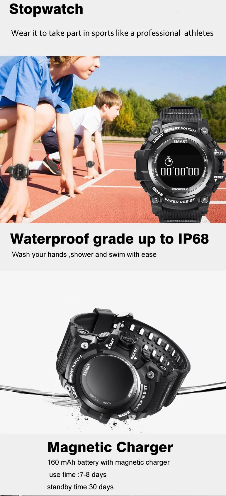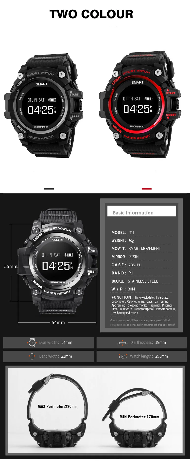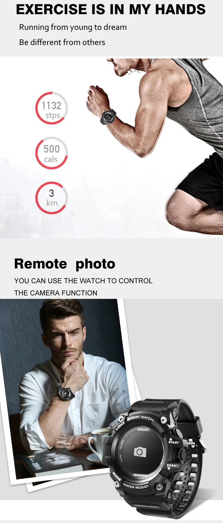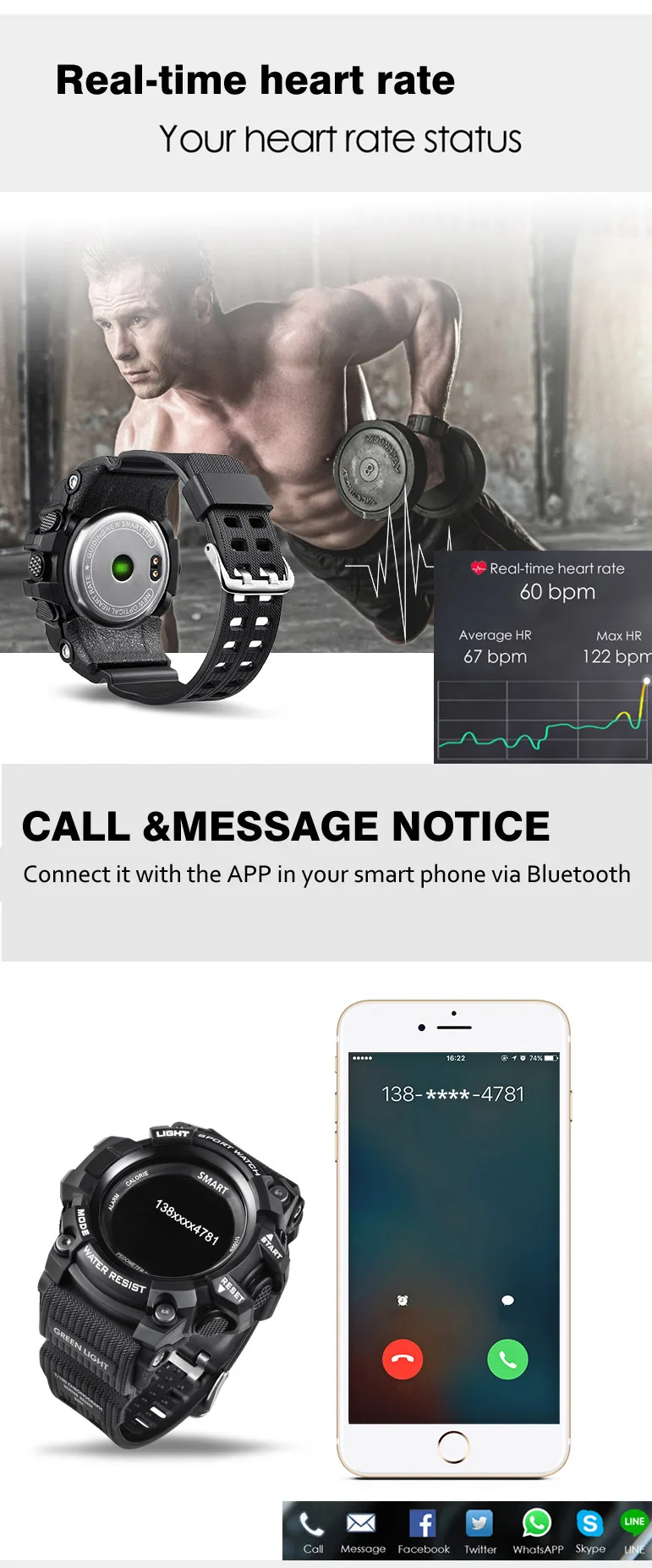 Function:Passometer,Sleep Tracker,Calendar,Push Message,Heart Rate Tracker,Alarm Clock,Chronograph,Remote Control,Fitness Tracker,Message Reminder,Week,Call Reminder