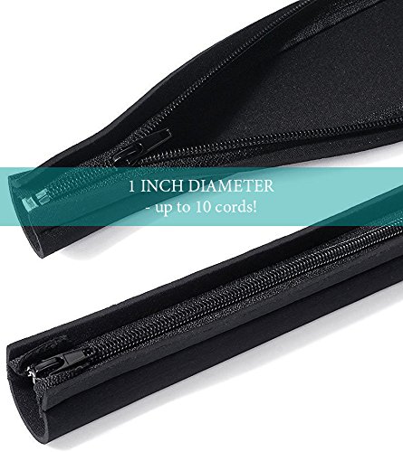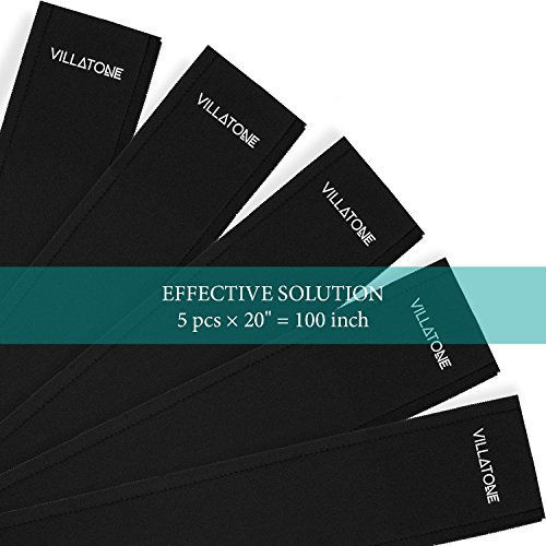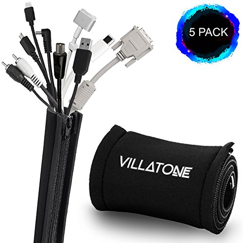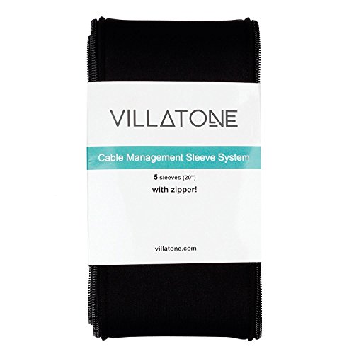 VILLATONE - Wire Organizer. Set of 5 × 20" [100 inch] Black Flexible Neoprene Cable Management Sleeves with Zipper for TV, Computer & Electronics