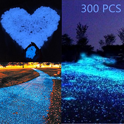Glow in the Dark Garden Pebbles Stone for Walkway Yard and Decor in Blue DIY Decorative Luminous Cobblestones Pebbles Stones for Aquarium Fish Tank Gravel Stones(300Pcs)