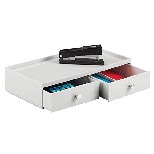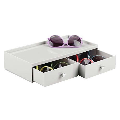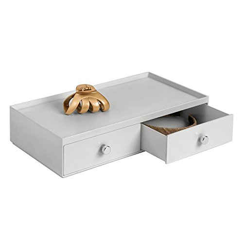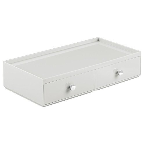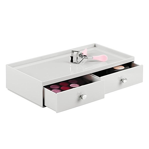 InterDesign Clarity Cosmetic Organizer for Vanity Cabinet To Hold Makeup, Beauty Products - 2 drawer Wide, Light Gray