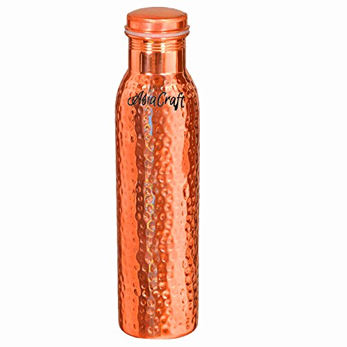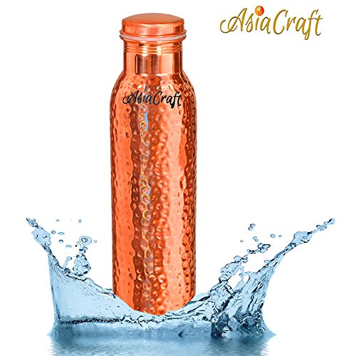 AsiaCraft Pure Copper Joint Free Hammered Bottle for Travel 900 ML