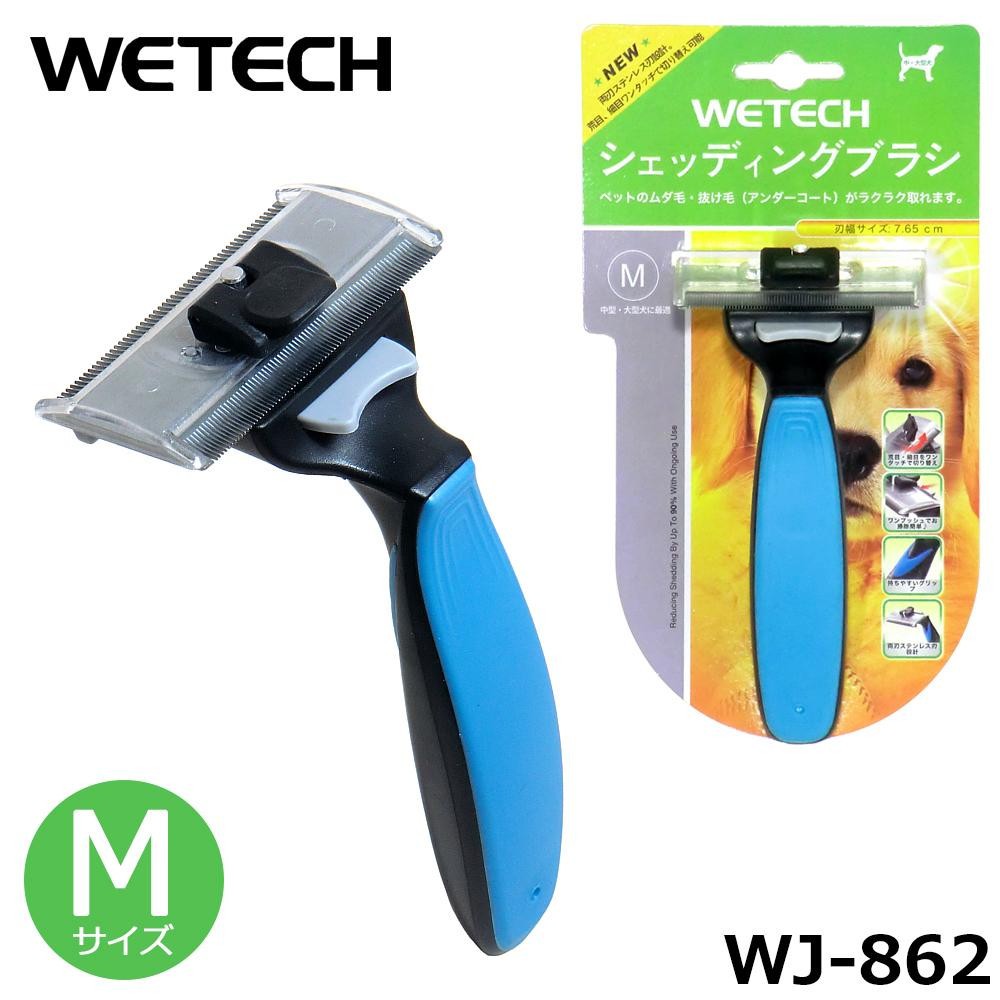 | 刃が180度回転する、シェッディングブラシです。粗目・細目の切替が可能で、刈れた毛はプッシュボタンで簡単に取り除けます。中型・大型犬におすすめのサイズです。 |