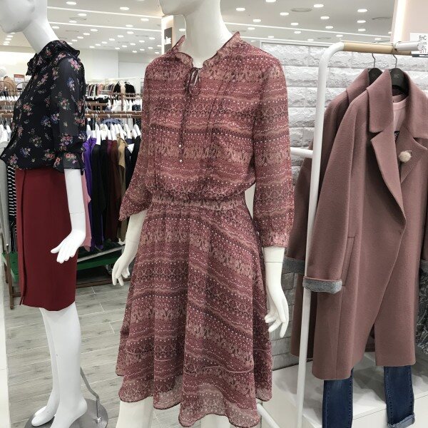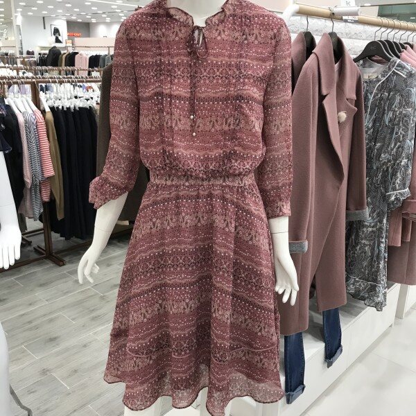 잔잔한 꽃프린트에 칠부소매인 쉬폰원피스입니다네이비에 레드무늬로 화사하고 여성스러워요허리밴딩 입니다