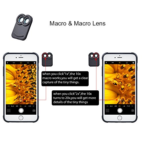 10X and 20X Macro Lens:Macro Lens can take clear photos of small objects, discovery the beauty of the detail. Capturing object in a very short distance without perspective distortion.