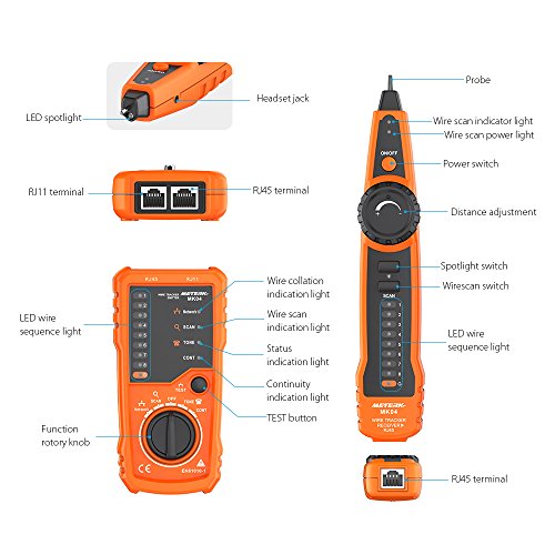 Meterk Wire Tracker RJ11 RJ45 Line Finder Handheld Cable Tester Multifunction Cable Check Wire Measuring Instrument for Network Maintenance Collation, Telephone Line Test, Continuity Checking