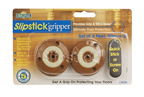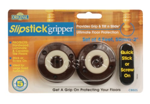 -. Feature : Provides grip and tilt n slide that won't scratch floors / protects hardwood, laminate and ceramic tile floors. / Guaranteed to stay on. / Ideal for large sized furniture; 2-Inch to 2-1/4-Inch diameter legs / The patented 50-mm - 2 Slipstick foot contains an O'ring specially formulated to protect floors and resist sliding. Plus, when you tilt n slide, it moves easily without damaging your floor.