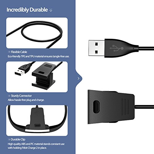 Hassle-free Use. Easily plug it into USB port on your PC, laptop, notebook, wall charger or car charger to charge. The durable clip holds Fitbit Charge 2 securely without getting loose easily.