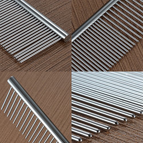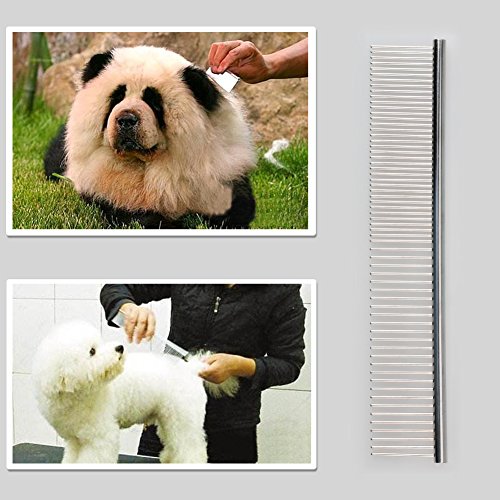 About Pet Grooming Comb: Dimension: 7.28*1.3 " /18.5*3.3cm Comb teeth wide: 1.1 inch/ 2.8cm Material: Steel Closer comb teeth: 11 teeth for 1 inch Wider comb teeth: 8 teeth for 1 inch