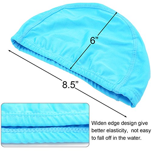 ★SUPERIOR MATERIAL: These swimming caps are made from a superior long lasting non-waterproof swimwear stretch fabric material with excellent vertical and horizontal directions elasticity .Delicate and smooth, extremely comfortable to wear, not sticky hair.