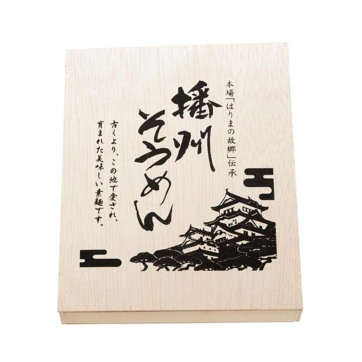 ● そうめんの名産地の播州地区(兵庫県南西部)で作られたおいしいそうめんを、プレミアム感のある木箱に収めました。