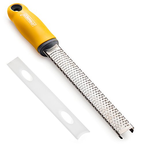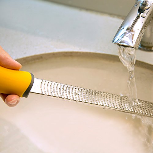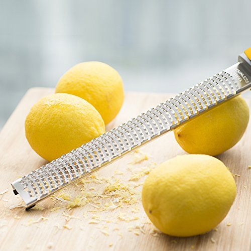 Special of Raniaco lemon zester: ☞ 1. It comes with a machine sharpened blade that sharply cuts through edible produce ranging across soft cheese to potato.? ☞2. Non-slip rubberized long grip of the zester allows fast and convenient grating of food.? ☞3. Raniaco zester grater stainless steel will comes with a white cover, after drying, you can slipped the cover back on it to keep it sharp in the drawer. ☞ 4.Hygienic stainless steel of the Raniaco zester is dishwater safe which enables you to conveniently clean it inside a dishwasher.