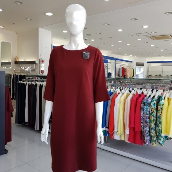 라운드네크의 소매 나팔훌 디테일의 H라인 원피스-JA7F9-WOP200-와인